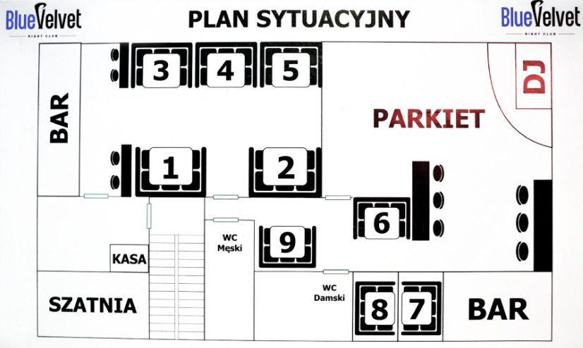 Loże 12-osobowe oznaczone są na planie sytuacyjnym numerami 3, 4, 5.